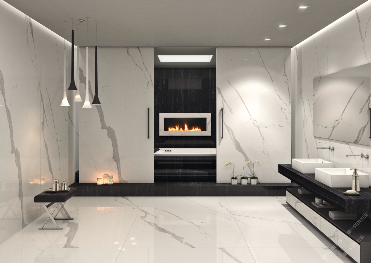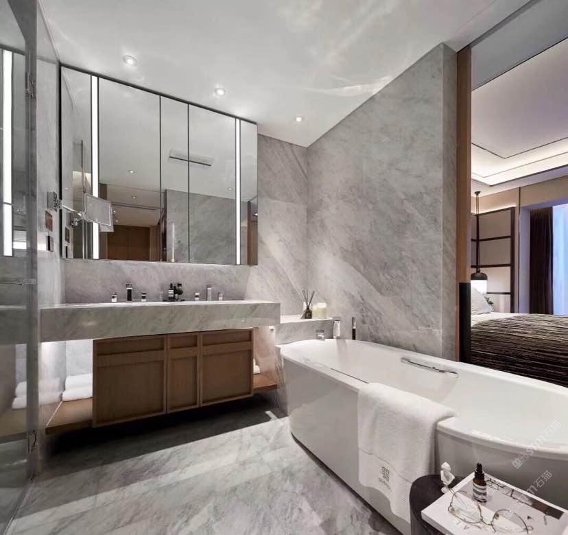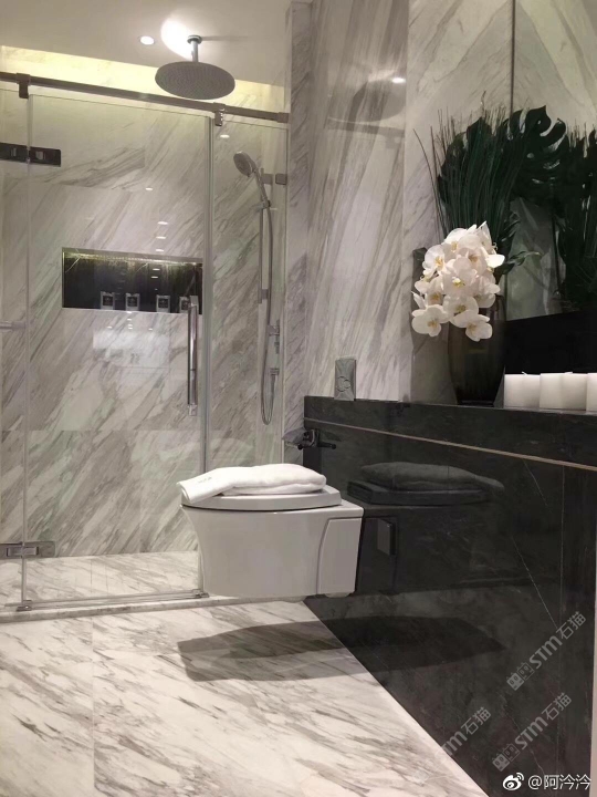 以大理石的天然肌理,雕琢衛(wèi)浴的奢雅格調。維納斯白的純凈底色,交織著金灰紋路的藝術韻律,從墻面延伸至地面,每一處鋪貼都是對精致生活的注解。在這一方空間里,大理石的冷冽質感與空間的溫馨氛圍碰撞,既顯高級感,又藏煙火氣,讓衛(wèi)浴時光成為一場視覺與感官的雙重奢享。